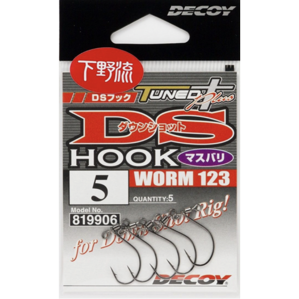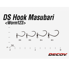 DECOY Worm 123 DS Hook Masubari è un amo specializzato progettato per delicati montaggi drop shot con lenze leggere (da 1 a 4 libbre). La sua costruzione garantisce che l'amo sia sempre posizionato con la punta rivolta verso l'alto, mantenendo l'esca in una posizione stabile.