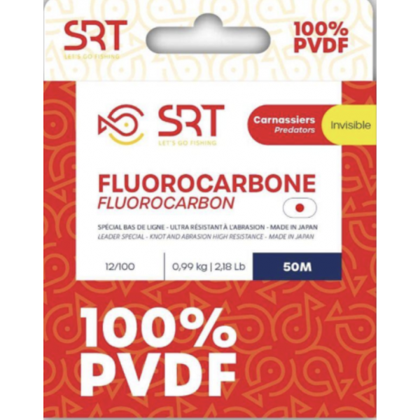 SRT Fluorocarbon è un filo 100% PVDF di prima qualità. Progettato per l'uso come materiale per terminali, SRT Fluorocarbon può essere utilizzato sia per la pesca con esche artificiali che con esche artificiali. Con un indice di rifrazione identico a quello dell'acqua, SRT Fluorocarbon è praticamente invisibile in acque limpide.