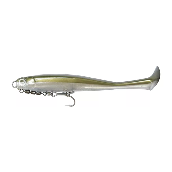 Progettata appositamente per la tecnica **Flashing Mid Strolling**. Con una jig head, il corpo rolla (oscilla lateralmente) e la coda produce una vibrazione fine. La pinna funziona come una chiglia...
