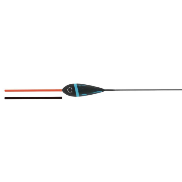 Galleggiante da lago con antenna cava intercambiabile montata su asta in fibra di vetro. Forma rovesciata per pescare fuori punta, deriva in carbonio.