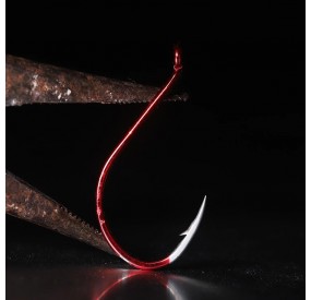 Inoltre, la verniciatura rossa non solo aumenta la mimetizzazione dell'amo (in tinta con il colore dell'esca utilizzata), ma garantisce anche un'ottima resistenza alla corrosione in acqua salata.