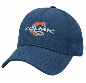 Cappellino in denim di cotone ritorto, con logo Colmic Official Team in versione gommata. Colore effetto jeans, dallo stile moderno e accattivante.