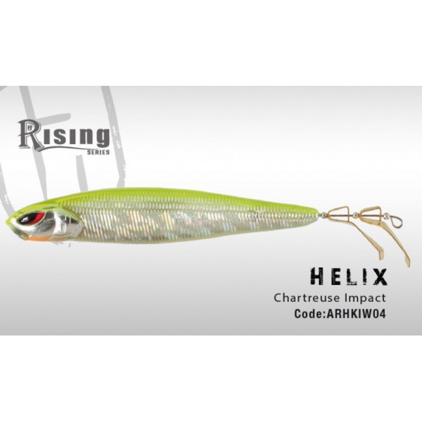 propeller "sui generis" che invece di una semplice elica ha due palette singole a rotazione inversa. helix entra a pieno titolo nella serie rising, sia per la qualità costruttiva e delle rifiniture sia per il suo design innovativo. le due pale massimizzano l'azione azione adescante del propeller, aumentando le vibrazioni ed i lampi di luce emessi, sia durante il recupero lineare, sia durante l'azione stop &go. nei recuperi costanti le rotazioni delle due palette producono distinte frequenze sonore accompagnate da lampi di luce per tutta la durata del recupero, permettendovi di sondare velocemente moltissima acqua. se impiegato con recuperi stop &go, helix vi sorprenderà per la prontezza del cambio d'assetto e l'immediatezza della rotazione delle due palette ad ogni vostro richiamo, grazie al perfetto bilanciamento dei pesi e alla forma delle pale. helix si distingue per la sua capacità di catturare sui bordi degli erbai, sopra gli erbai sommersi, a bordo canneto, e in prossimità di qualsiasi cover semisommersa. basta recuperare, o dare uno strappetto, mettendo in rotazione le palette, il pesce farà il resto.