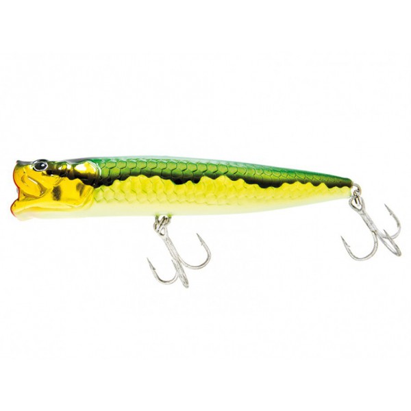 il popper 130t è versatile e con recuperi diversi si adatta a molte situazioni. per una pesca di ricerca, jerkate decise creano potenti ‘'pop'' in superficie; con jerkate più morbide e lineari, produce dei tunnel di bolle, che sono in grado di richiamare i predatori da notevole distanza. la caratteristica principale che lo contraddistingue è il suono che emette durante l'azione di "popping'', ottenuto grazie all'innovativo design della bocca e alla forma affusolata del corpo. armatura passante in acciaio inox, corpo in abs, coating e vernici extra resistenti e ancorette di alta qualità ne consentono un utilizzo a 360° in sicurezza anche su grandi predatori